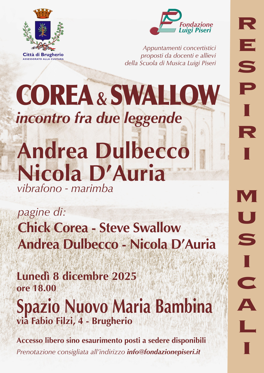 I loro brani saranno infatti proposti al vibrafono e marimba da Andrea Dulbecco e Nicola D’Auria, che proporranno anche alcune loro pagine originali.